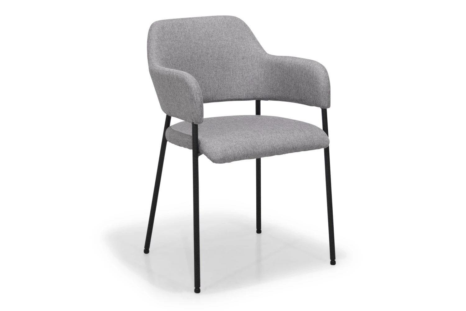 Elegant armstol med god rygstøtte – det er det, du får i vores Bresso-serie. Denne spisestuestol er i lysegråt stof og sortlakeret metalstel. Stolen har en højde på 82 cm, en dybde på 52 cm og en længde på 55 cm. Armlæn højden er 71 cm. Se hele Bresso-ser
