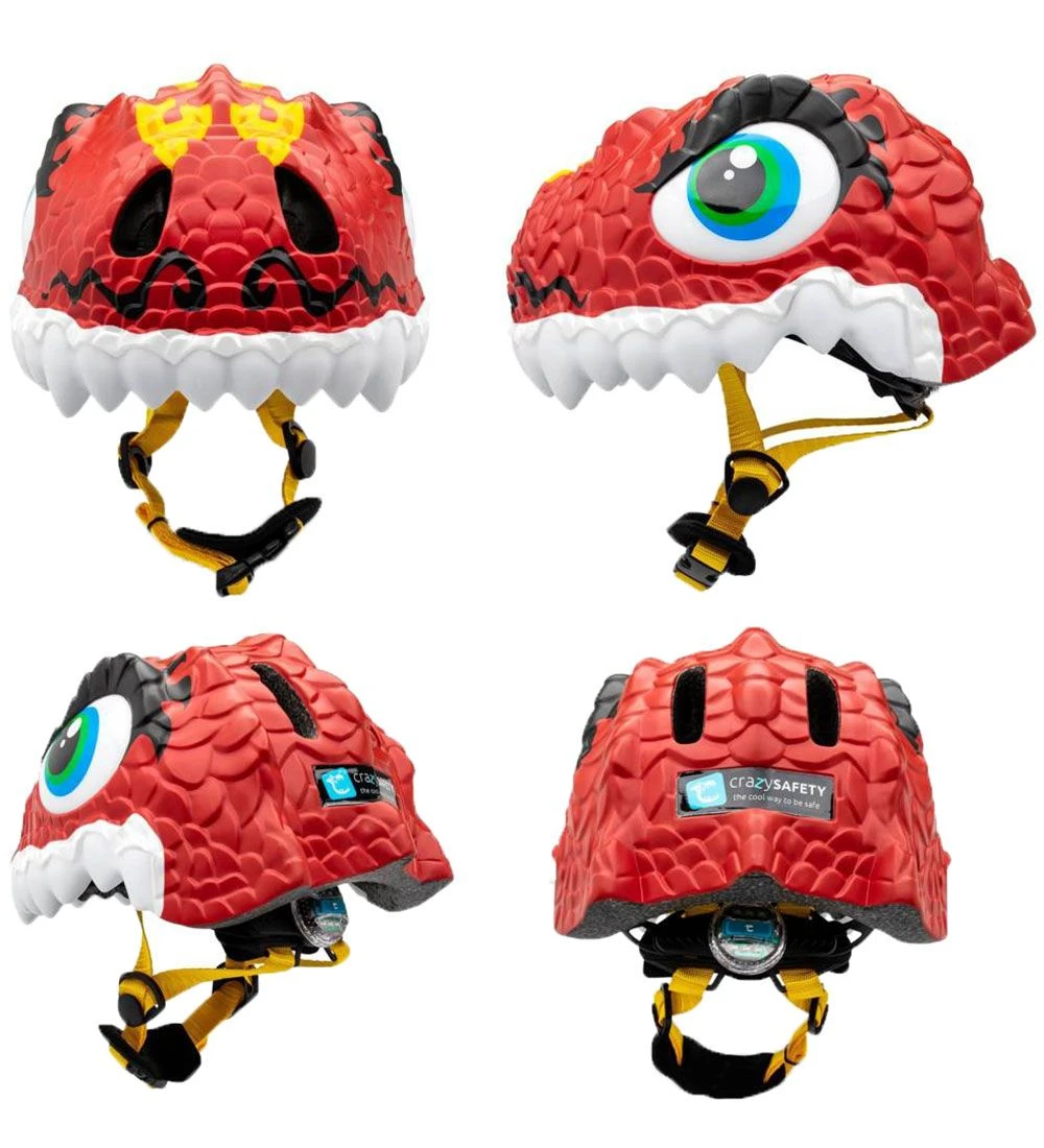 Flot Crazy Safety cykelhjelm i rød og med en form som en drage.