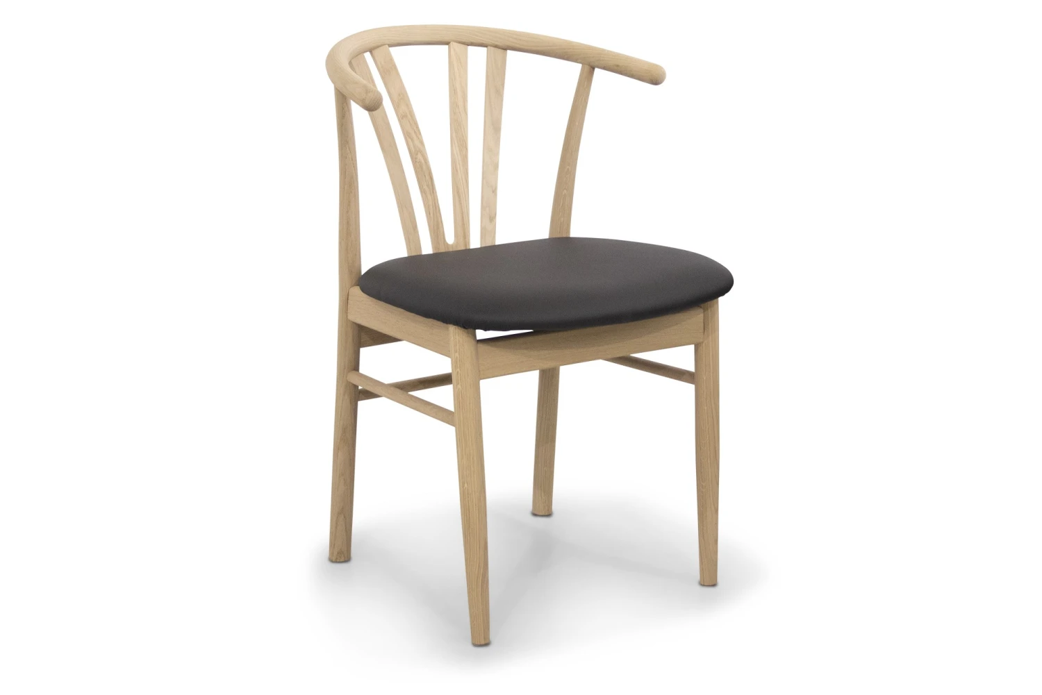 Devon Spisesbordsstol, Ubehandlet Egetræ M. Sort Lædersæde
