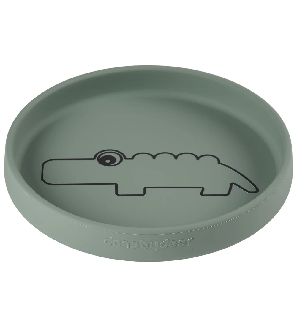 Smart Done by Deer tallerken i armygrøn silikone med et brunt print af krokodillen Croco.