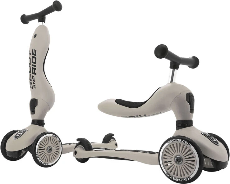 Highwaykick 1 er et 2-i-1 løbehjul, der kan justeres, så det er med sæde til de mindste og i takt med barnet vokser, kan det laves til et ’rigtig’ løbehjul.