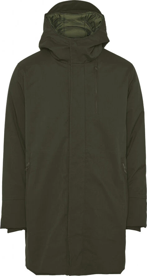 Long soft shell jacket with adjustable hood. Shell composition- 65% Organic Cotton 35% Recycled Polyester Lining composition- 100% Recycled polyester Padding composition- 100% Recycled polyester Specs- – Waterproof (5000 mm) – Breathable (5000/gr/m2 24h) – Windproof Vegan approved by PETA This jacket is GRS certified. GRS is the world’s leading certification standard for recycled textiles including both ecological and social criteria. GRS covers every step in the production process, from the fiber to the finished garment. This garment is certified by CU, Lic.No. 847594.