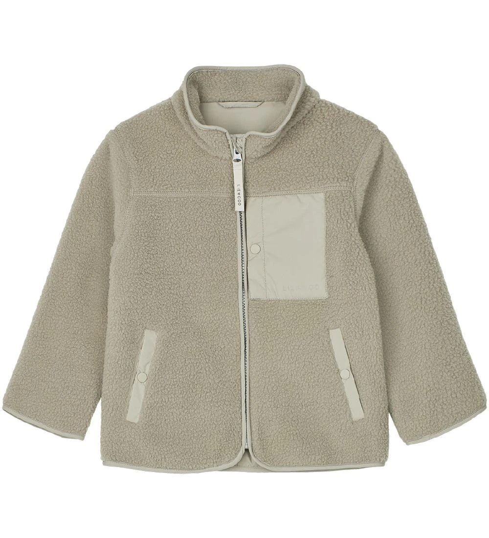 Smart Liewood fleecejakke af ensfarvet beige teddyfleece, hvor der på venstre bryst står “Liewood”.