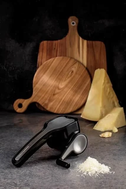 Kværn mandler til mandelmel med en Microplane mandelkværn. Kværnen har et roterende rivejern med konisk tragt, som leder mandlerne ned til de skarpe skær i rustfrit stål. Du skal bare dreje på håndtaget, og så klarer kværnen arbejdet for dig. Du kan også bruge kværnen til fx hård ost, når der skal en god parmesan til pastaen, eller et drys mørk chokolade på den hjemmebagte kage.