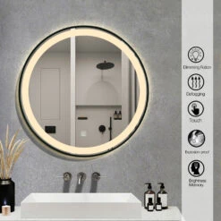 Premium LED Badeværelse Spejl Med Sort Alu Ramme Antidug,Touchsensor (Variant: Størrelse: Ø 70)