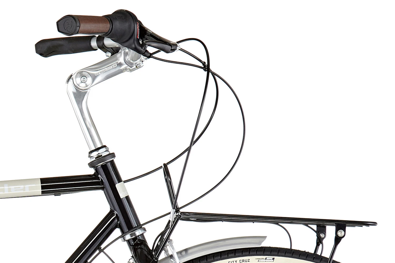 Bricktown-modellen fra Ortler er en moderne udgave af en klassisk vintage-model. Den har et slankt look med den markant store bagagebærer foran, som minder om en stil fra midten af sidste århundrede.