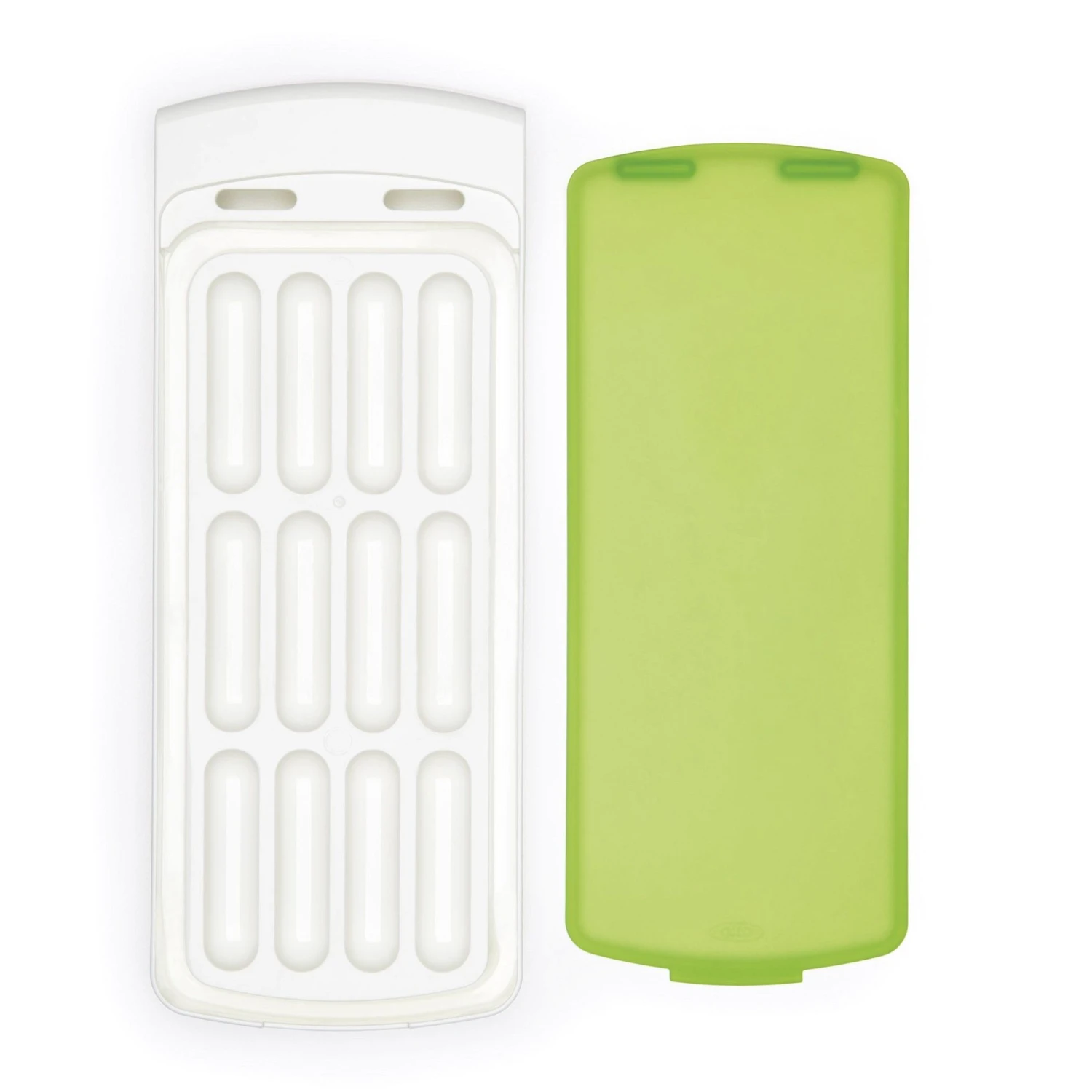 Keep drinks chilled in your reusable bottles with the OXO No-Spill Ice Stick Tray! This innovative ice tray makes skinny ice sticks that are perfect for use in water bottles, canteens, thermoses, and other containers with small openings. With a removable silicone lid that keeps odors out and prevents water from spilling, this ice stick tray can be stacked or stored in the freezer at any angle, saving you freezer space. With the OXO No-Spill Ice Stick Tray, you’ll have skinny ice sticks perfect for filling your bottles and thermoses so you can enjoy ice-cold water at the gym, on a hike, or on the go!