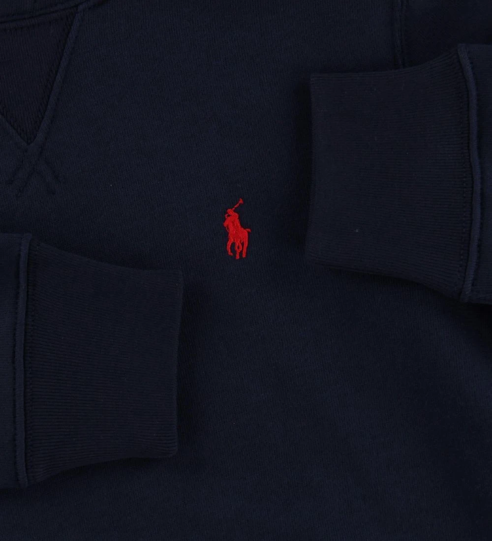 Lækker Polo Ralph Lauren-hættetrøje i navy sweat med et lille, broderet logo i rød på venstre bryst.