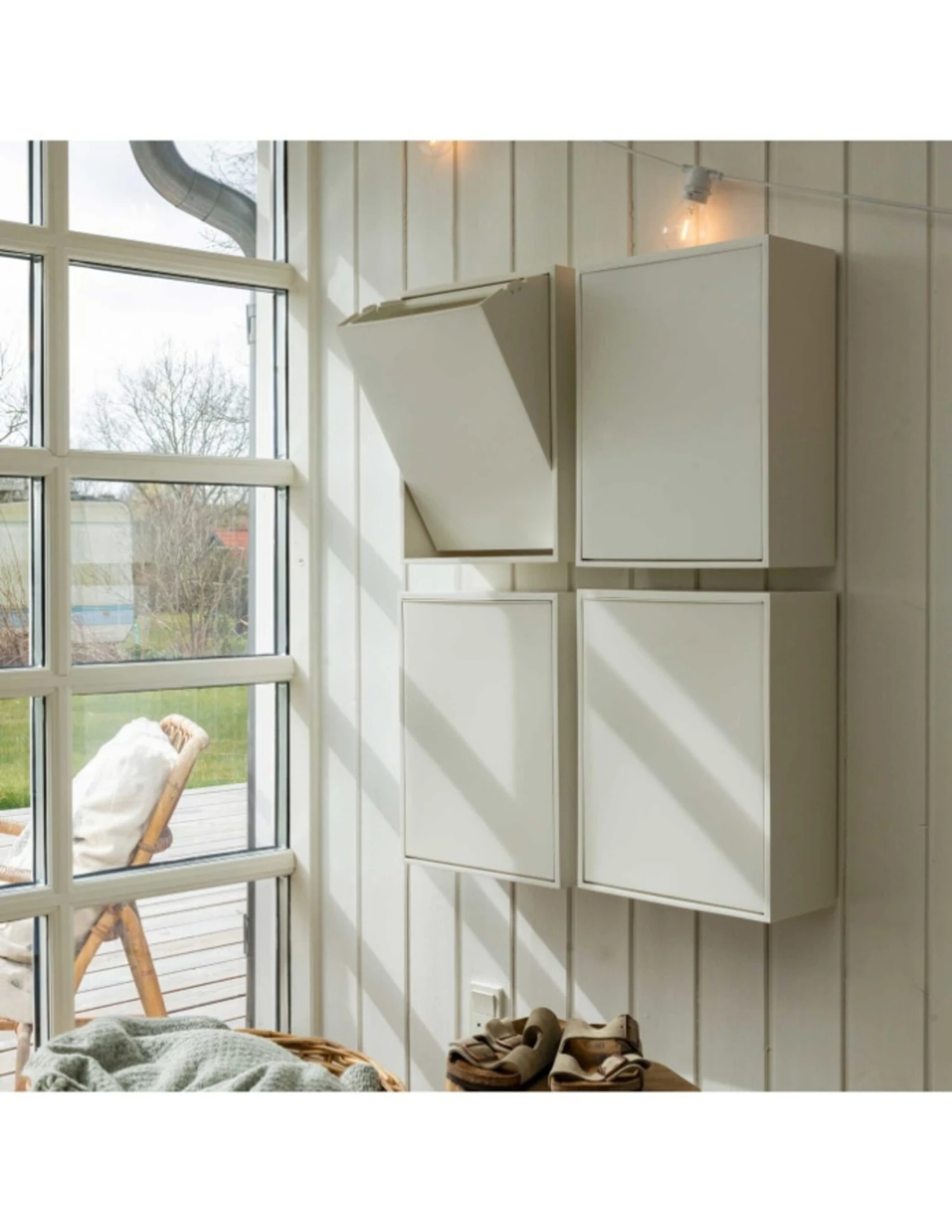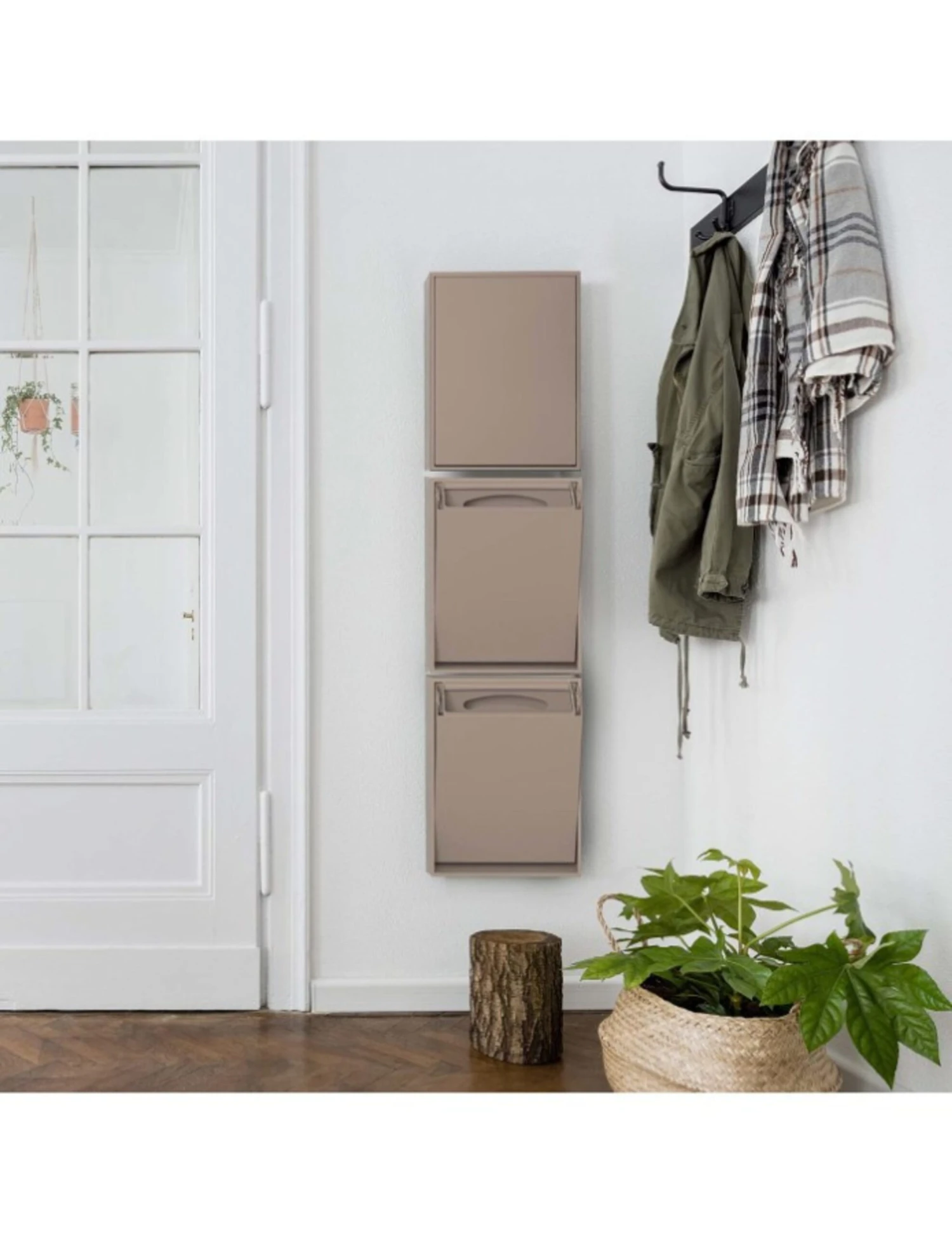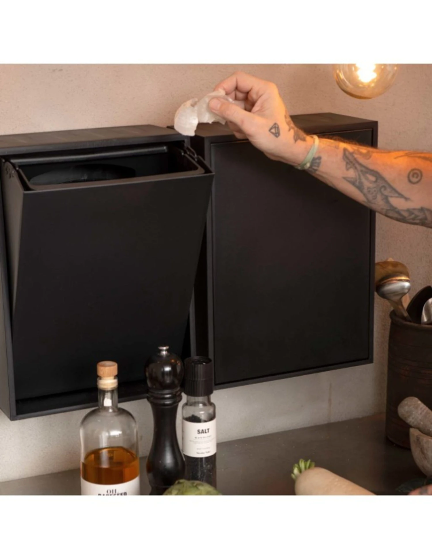 The bins can be hung and combined as you wish. They are made of recycled plastic, which makes the boxes sustainable. When the boxes are no longer usable, they can also be recycled as they are made of recycled plastic. There may therefore be slight variations and small dots in the surface of the boxes. The boxes are perfect when you don't have space under your sink or just wanted better accessibility. Apart from that, the boxes are also beautiful in their own right and if you were to think outside the box, you could also use the boxes for more than just waste sorting.