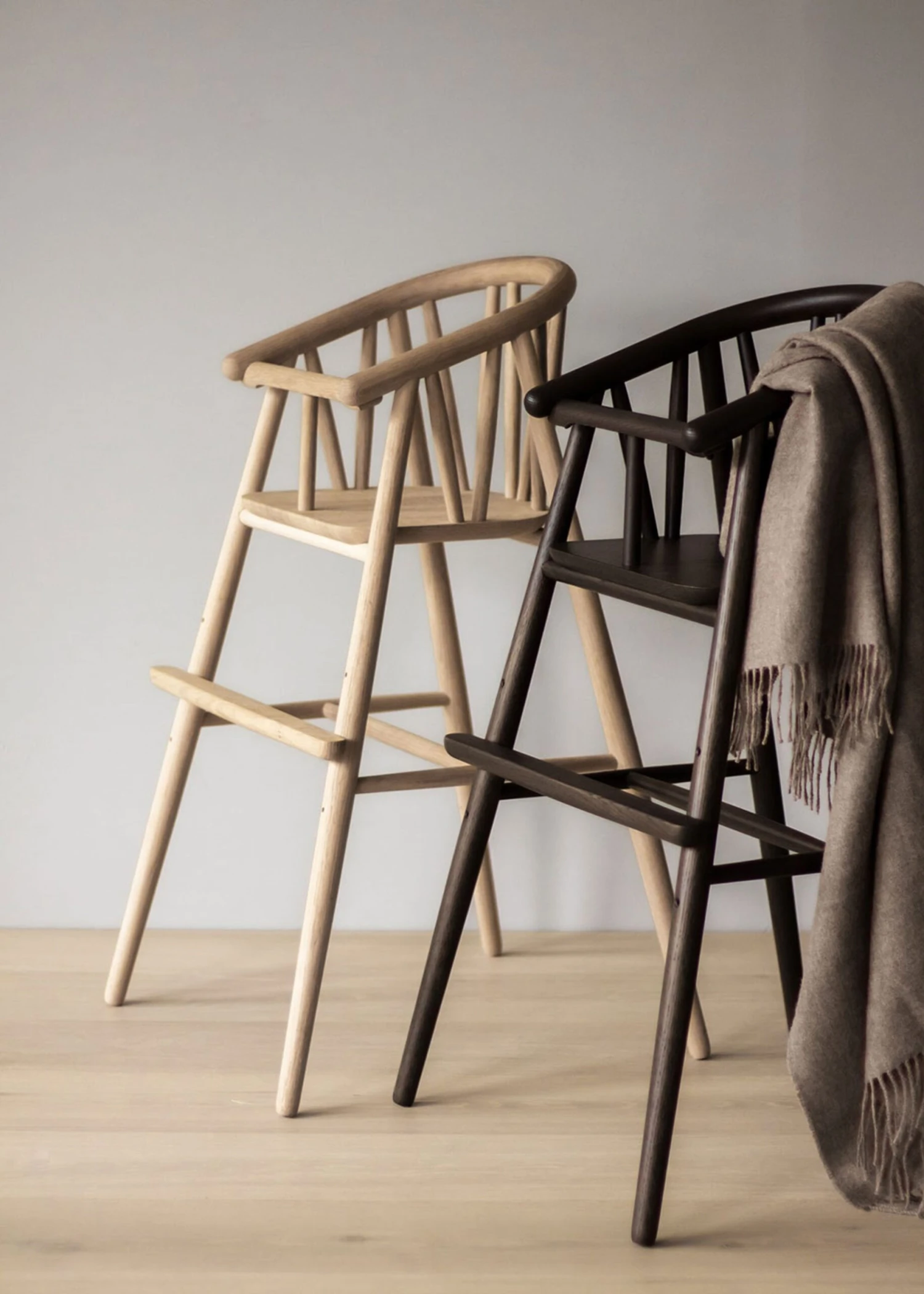 - Material The high chair is made of FSC-certified European oak / brass plates.