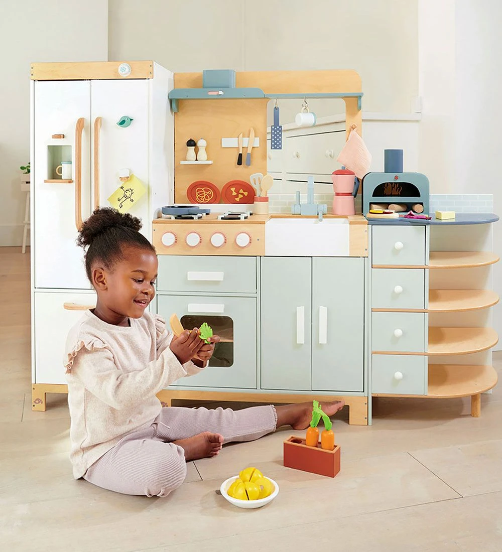Legekøkkenet indbyder til masser af leg, og med det fine design ser det lige så flot ud på børneværelset som i stuen eller i køkkenet.