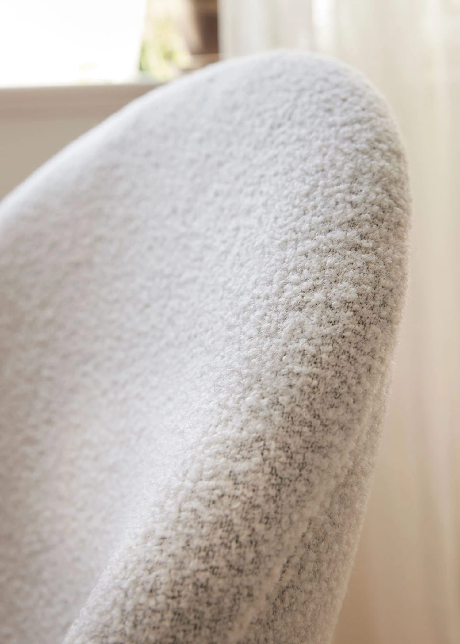 The chair's shape looks elegant from any angle. With its geometric frame, the chair's frame has an almost floating look. The chair's elegant armrests with rounded edges create a welcoming look in the room. The chair is available in a myriad of colours and fabrics, allowing you to choose the chair that best suits your home.